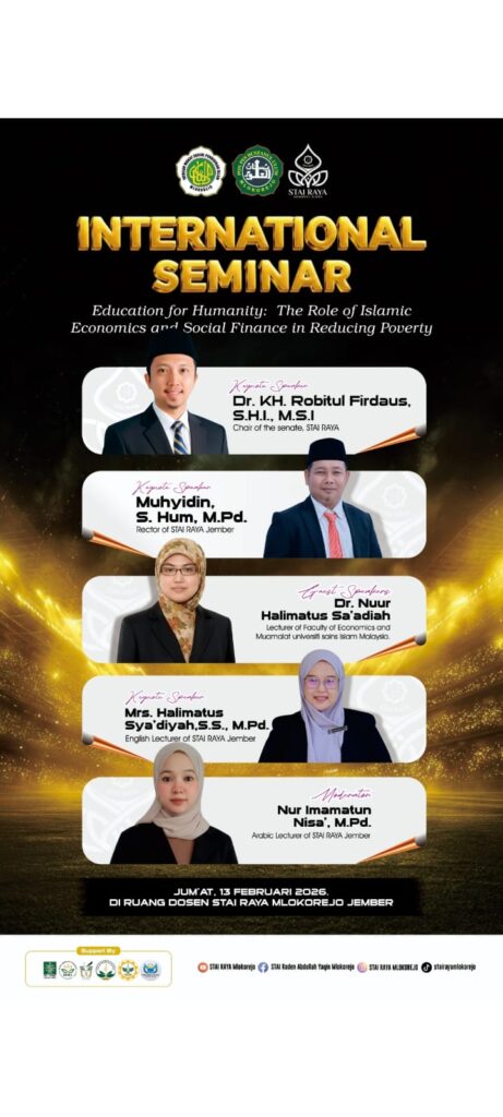 JEMBER 13/02/2025 – STAI Raden Abdullah Yaqin (STAI RAYA) Mlokorejo resmi menyepakati kerja sama internasional dengan akademisi asal Malaysia. Prosesi penandatanganan Letter of Intent (LoI) ini berlangsung di Ruang Dosen STAI RAYA Jember, Jumat (13/2), segera setelah agenda Seminar Internasional berakhir. Penandatanganan dokumen kerja sama dilakukan oleh narasumber tamu dari Malaysia, Dr. Nuur Halimatus Sa’adiah, […]