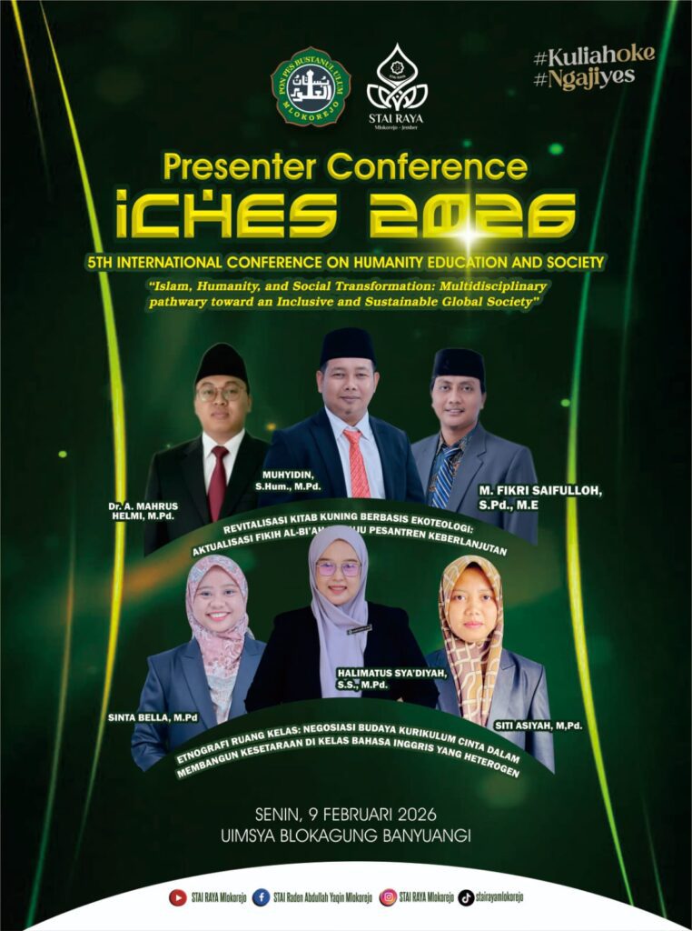 Enam Dosen dari Sekolah Tinggi Agama Islama Raden Abdullah Yaqin (STAIRAYA) telah mempresentasikan hasil penelitian mereka di (ICHES) 2026, diselenggarakan pada tanggal 09-10 Februari 2026 di Banyuwangi. Dosen-dosen STAI Raya yang mempresentasikan penelitian mereka adalah: 1. Dr. Achmad Mahrus Helmi M.Pd. 2. Muhyidin S.Hum., M.Pd. 3. M. Fikri Syaifulloh S.Pd., M.E 4. Halimatus Sya’diyah, S.S., […]