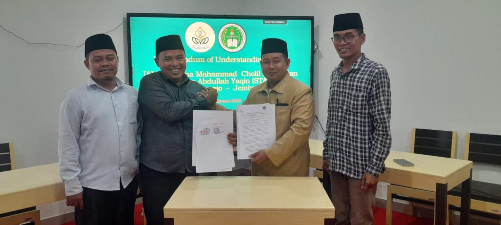 Jember – Sekolah Tinggi Agama Islam (STAI) RAYA Jember resmi menjalin kerja sama dengan Institut Agama Islam (IAI) Syaichona Cholil Bangkalan dalam bidang Tri Dharma Perguruan Tinggi. Penandatanganan nota kesepahaman ini dilakukan oleh Ketua STAI RAYA Jember, Bapak Muhyidin, S.Hum., M.Pd., dan Rektor IAI Syaichona Cholil Bangkalan, Bapak Drs. KH. Wahid HS, M.Pd. Acara ini