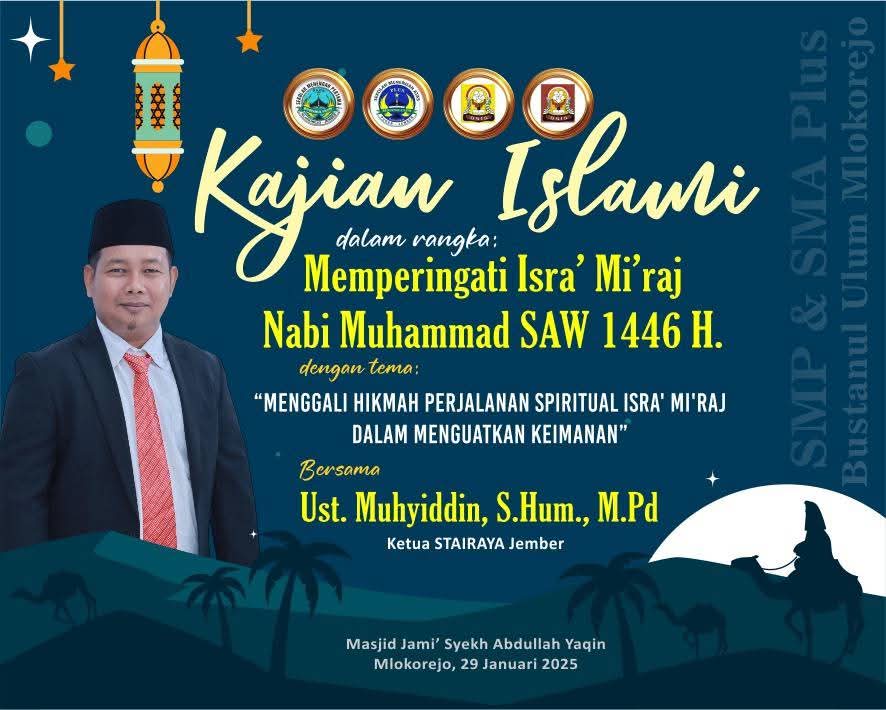Jember, 29 Januari 2025. Ketua STAI RAYA Jember, Muhyidin, S.Hum. M.Pd. dalam forum Kajian Ilmiah dengan tema “Menggali Hikmah Perjalanan Spiritual Isra’ Mi’raj Dalam Menguatkan Keimanan” ia menuturkan bahwa peristiwa Isra’ Mi’raj emang sulit dilogikakan, namun kita sebagai Muslim harus menerimanya dengan penuh keimanan, tidak ada hal yang mustahil bagi Allah untuk menjalankan hambaNya, nabi Muhammad SAW. dari Masjidil Haram, Makkah menuju Baitul Maqdis Palestine sekitar 1400 an KM lalu dilanjutkan dengan perjalanan menuju ke Sidratul Muntaha kemudian kembali lagi ke masjid al-Haram Makkah dengan waktu yang relatif singkat, tidak sampai semalam.